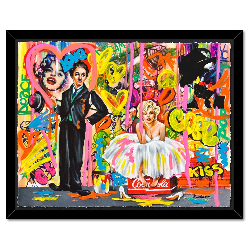 "Kiss" is a one-of-a-kind mixed media on deckle edge paper by Nastya Rovenskaya; hand signed by the artist. This piece comes custom framed and includes letter of authenticity. Measures approximately 30" x 36.5" (framed), 24" x 30.5" (image). This item requires special handling and may have a longer than usual turnaround.