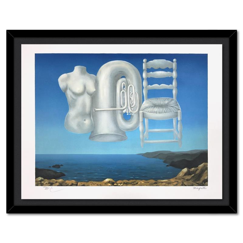 Rene Magritte 1898-1967 (After), "Le Temps Menacant (Threatening Weather)" Framed Limited Edition Lithograph, Estate Signed and Numbered 122/275 with Certificate of Authenticity.