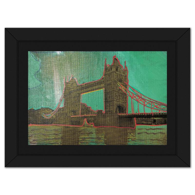 "London Bridge" is a hand embellished limited edition silkscreen on canvas by Andy Warhol protege, Steve Kaufman (1960-2010), numbered 11/50 inverso and hand signed by the artist. This piece comes custom framed. Includes Letter of Authenticity. Measures approx. 12.5" x 16.5" (frame), 9.5" x 13.5" (image). This item requires special handling and may have a longer than usual turnaround.
