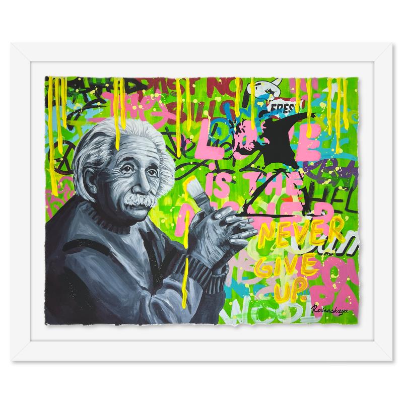 "Love is the Answer" is a one-of-a-kind mixed media on deckle edge paper by Nastya Rovenskaya; hand signed by the artist. This piece comes custom framed and includes letter of authenticity. Measures approximately 30" x 36" (framed), 24" x 30" (image). This item requires special handling and may have a longer than usual turnaround.