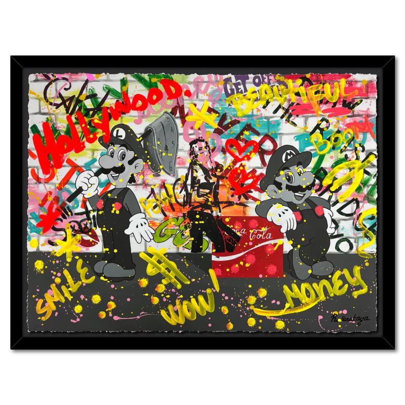 "Loving Coca Cola" is a one-of-a-kind mixed media on deckle edge paper by Nastya Rovenskaya; hand signed by the artist. This piece comes custom framed and includes letter of authenticity. Measures approximately 36" x 46" (framed), 30" x 40" (image). This item requires special handling and may have a longer than usual turnaround.