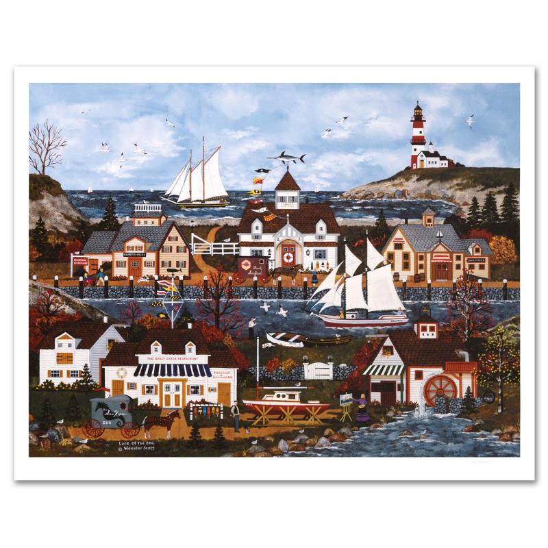 "Lure of the Sea" is a limited edition lithograph on paper by Jane Wooster Scott. The piece is hand signed and numbered and comes with a letter of authenticity. Measures approx. 33" x 27" (with border), 30" x 22.5" (image).