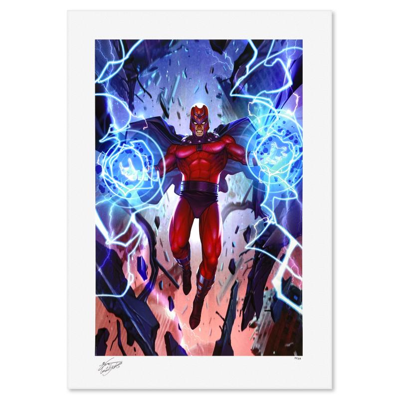 "Magneto" is a limited edition giclee on paper from Marvel Comics and InHyuk Lee, PP numbered 3/4 and bearing the authorized signature of the artist. Includes Letter of Authenticity. Measures approx. 24" x 18" (border) 20" x 14" (image).