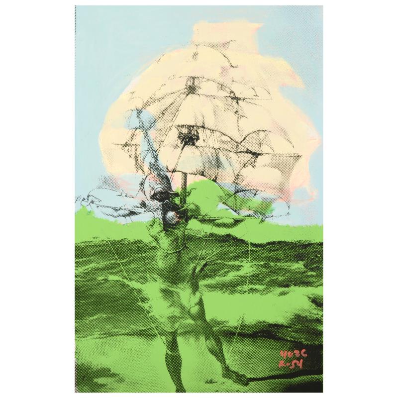 Ringo Daniel Funes (Protege of Andy Warhol's Apprentice, Steve Kaufman), "Man Ship" One-of-a-Kind Mixed Media on Canvas, Hand Signed with Certificate of Authenticity.
