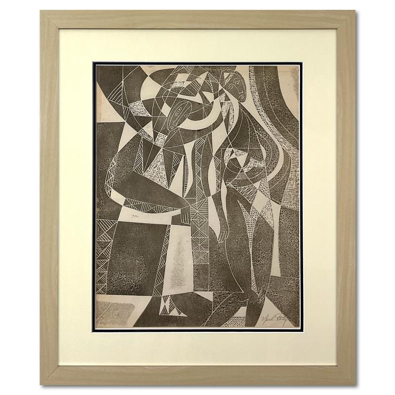 "Mardi Gras" is a one-of-a-kind linocut on paper by Neal Doty (1941-2016), hand signed by the artist. This piece comes custom framed. Includes Letter of Authenticity. Measures approx. 24" x 28.5" (frame), 16" x 20" (image).