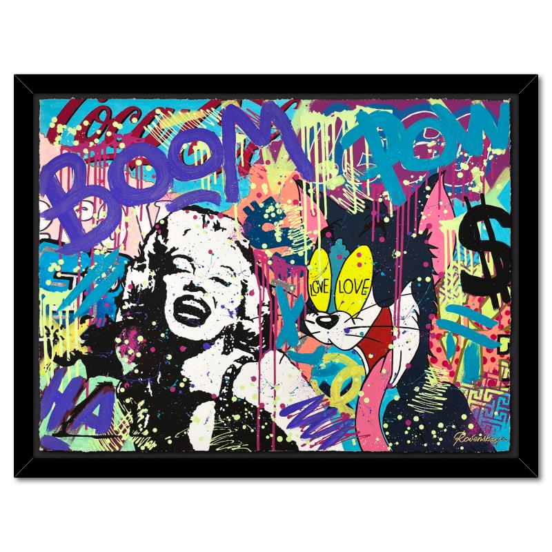 "Marilyn in love" is a one-of-a-kind mixed media on deckle edge paper by Nastya Rovenskaya; hand signed by the artist. This piece comes custom framed and includes letter of authenticity. Measures approximately 36.5" x 46" (framed), 30.5" x 40" (image). This item requires special handling and may have a longer than usual turnaround.