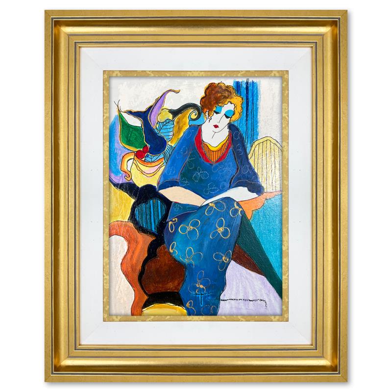 "Memorie" is a one-of-a-kind mixed media over paint on wood by Itzchak Tarkay (1935-2012), hand signed by the artist. This piece comes custom framed. Includes Letter of Authenticity. Measures approx. 19.5" x 16.5" (frame), 11.5" x 8.5" (image). This item requires special handling and may have a longer than usual turnaround.
