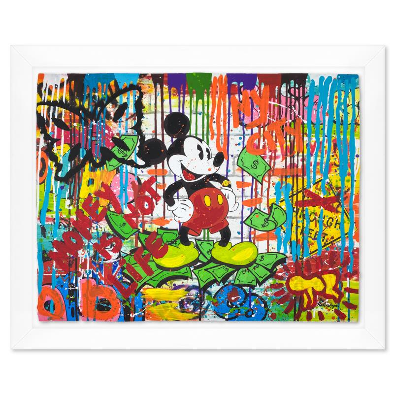 "Mr. Dollar Bill" is a one-of-a-kind mixed media on deckle edge paper by Nastya Rovenskaya, Hand signed by the artist. This piece comes floating in a custom frame. Includes Letter of Authenticity. Measures approximately 28" x 34" (framed), 24" x 30" (image). This item requires special handling and may have a longer than usual turnaround.