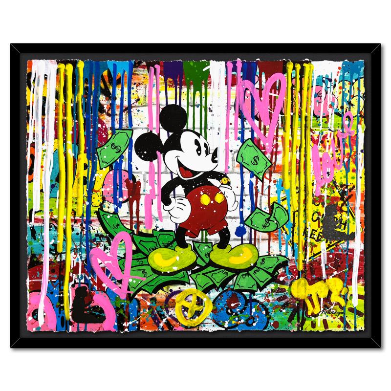 "Mr. Dollar Bill" is a one-of-a-kind mixed media on deckle edge paper by Nastya Rovenskaya; hand signed by the artist. This piece comes custom framed and includes letter of authenticity. Measures approximately 30" x 36" (framed), 24" x 30" (image).