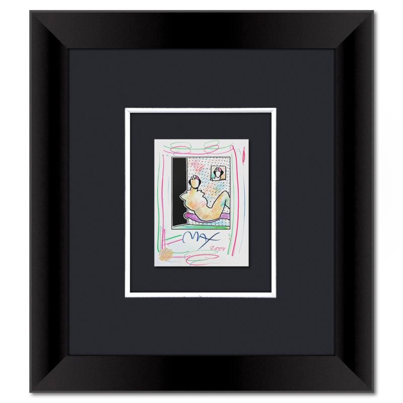 "Neo Pop Series (Neo RZF883)" is a one-of-a-kind mixed media on paper, hand signed by Peter Max. The piece comes custom framed with a backside cutout to display Peter Max Studio registration number 339283 certifying authenticity. Measures approximately 22.5" x 20" (frame), 8.5" x 6" (image). This item requires special handling and may have a longer than usual turnaround.