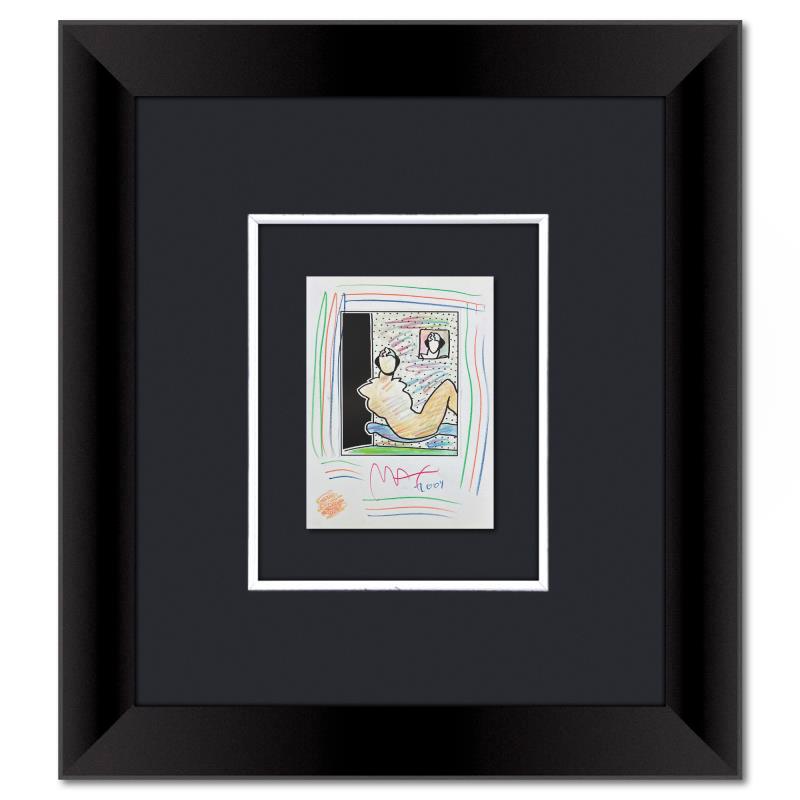 "Neo Pop Series (Neo RZF883)" is a one-of-a-kind mixed media on paper, hand signed by Peter Max. The piece comes custom framed with a backside cutout to display Peter Max Studio registration number 339281 certifying authenticity. Measures approximately 22.5" x 20" (frame), 8.5" x 6" (image). This item requires special handling and may have a longer than usual turnaround.
