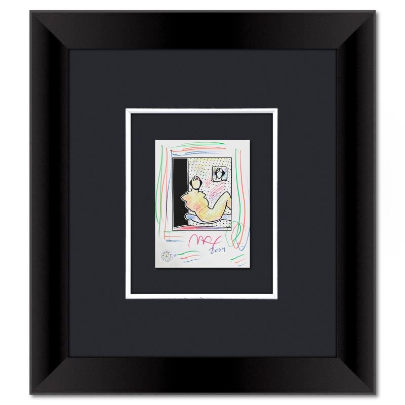 "Neo Pop Series (Neo RZF883)" is a one-of-a-kind mixed media on paper, hand signed by Peter Max. The piece comes custom framed with a backside cutout to display Peter Max Studio registration number 339278 certifying authenticity. Measures approximately 22.5" x 20" (frame), 8.5" x 6" (image). This item requires special handling and may have a longer than usual turnaround.