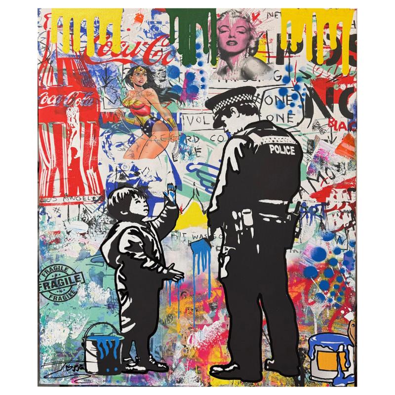 "Never Give Up" is a unique mixed media acrylic on gallery wrapped canvas by Jozza. This piece is hand signed and titled in verso. Includes Letter of Authenticity. Measures approximately 30" x 24" (image).