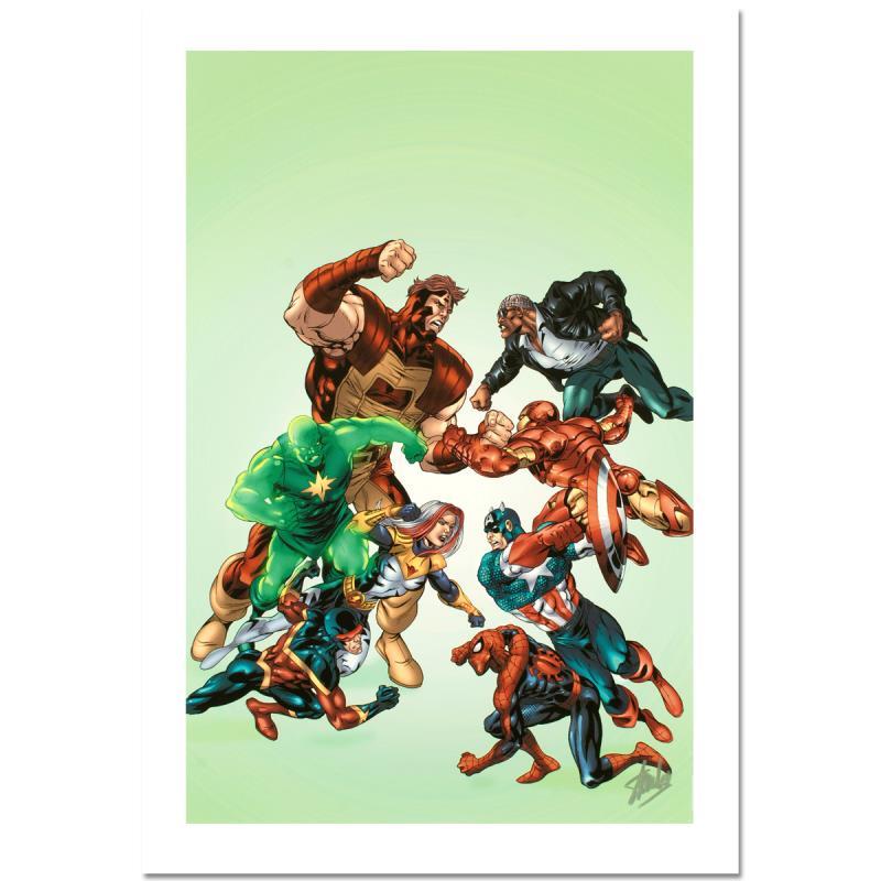 "New Thunderbolts #3" is a limited edition giclee on canvas with art by Tom Grummett". Officially licensed by Marvel, this piece is numbered 4/10 and hand signed by creative legend Stan Lee (1922-2018). The piece comes with a certificate of authenticity. Measures approximately 27" x 18".