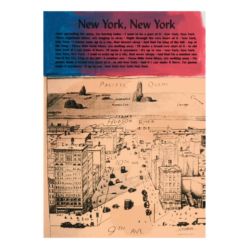 "New York, New York" is a one-of-a-kind hand-pulled silkscreen and mixed media painting on canvas by Ringo (Daniel Funes) - protege of Andy Warhol's apprentice, Steve Kaufman. This piece is hand signed by the artist and Includes Certificate of Authenticity. This piece comes from the Andy Warhol Legacy Series. Measures approx. 14" x 16" (image). ** Please note: the signature for this piece is located within the right border and will be outside the display image when framed; see photo for reference. **