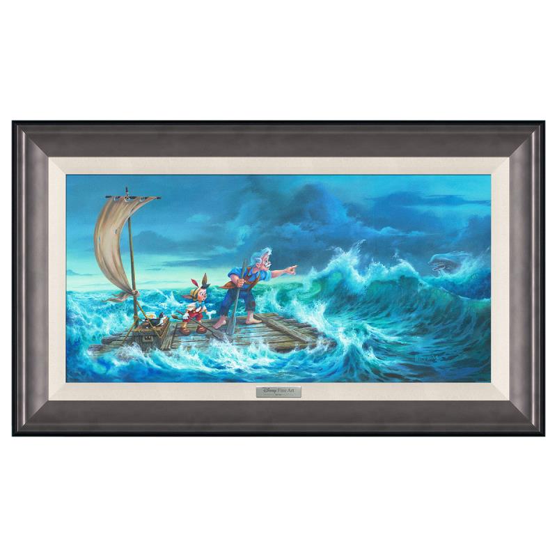 "No Escape" is a framed limited edition giclee on canvas by Michael Humphries. Part of the Disney Fine Art Silver Series, and featuring Pinocchio imagery, this piece comes framed and ready to hang. It is accompanied by a Certificate of Authenticity from Disney Fine Art. The edition is limited to just 500 pieces and measures approximately 17" x "29 (framed), 12" x 24" (image). This piece requires special handling and may have a longer than normal turnaround.