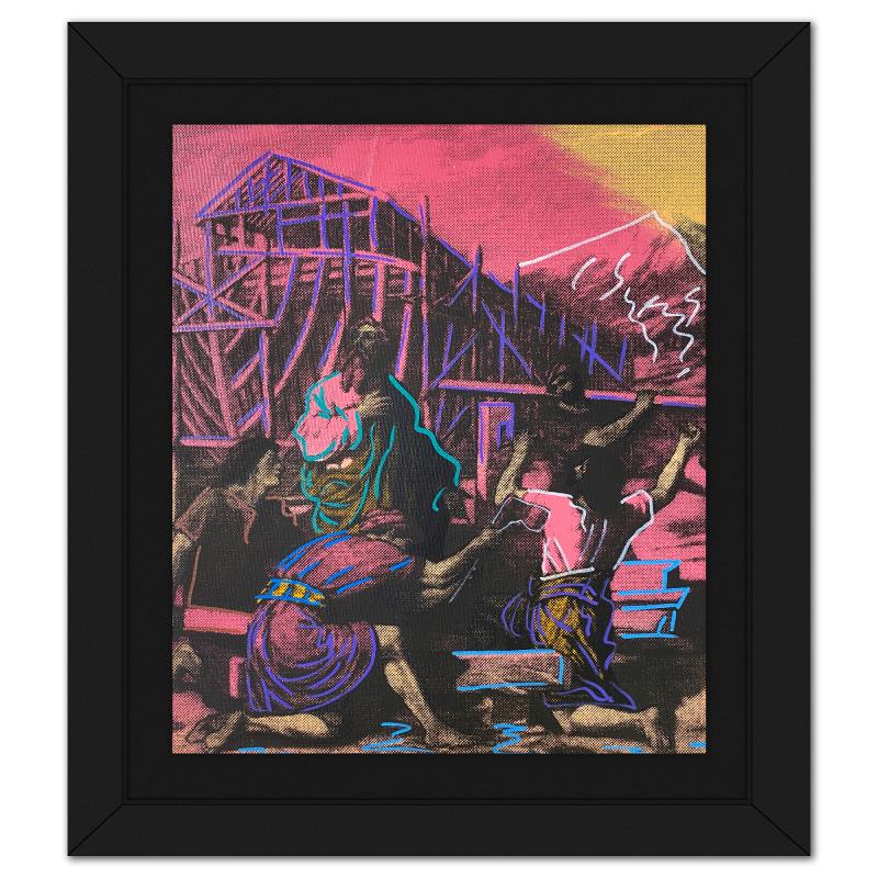 "Noah's Arc" is a hand embellished limited edition silkscreen on canvas by Andy Warhol protege, Steve Kaufman (1960-2010), numbered 13/50 inverso and hand signed by the artist. This piece comes custom framed. Includes Letter of Authenticity. Measures approx. 17" x 14.5" (frame), 14" x 11.5" (image). This item requires special handling and may have a longer than usual turnaround.