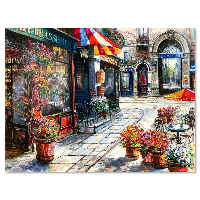 "Passage Le Toquet" is a hand embellished limited edition publisher's proof on stretched canvas by Vadik Suljakov, numbered inverso and hand signed by the artist. Includes Letter of Authenticity. Measures approx. 18" x 24" (image). There may be minor wear on the corners and edges.