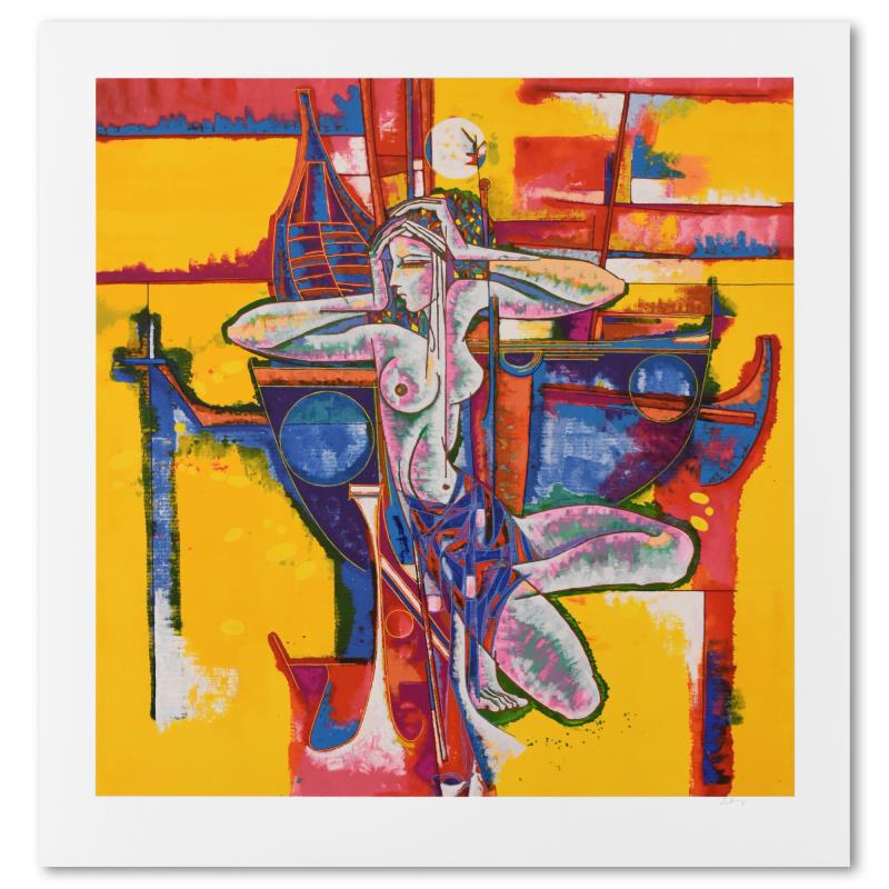"Passion of Summer" is a limited edition serigraph on paper by Lu Hong, numbered and hand signed by the artist. Includes Letter of Authenticity. Measures approx. 35" x 36.5" (with border), 30" x 31" (image).