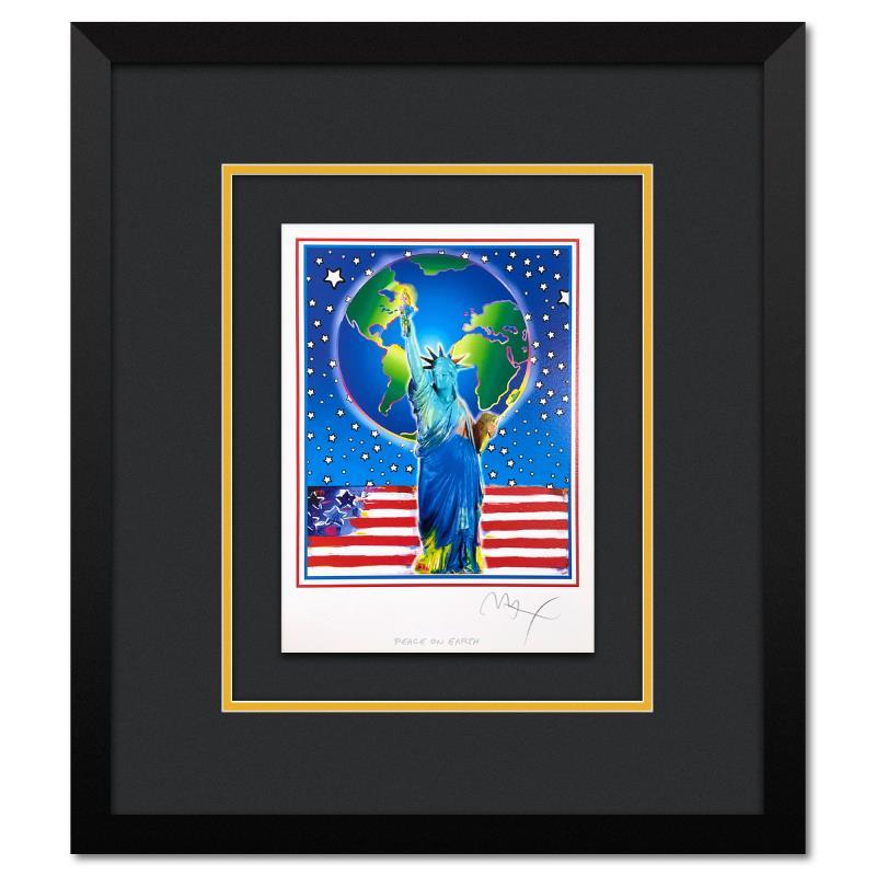 "Peace on Earth" is a limited edition lithograph on paper by Peter Max, numbered and hand signed by the artist. This piece comes framed. Includes Certificate of Authenticity from Peter Max Studios. Measures approx. 22.5" x 19" (frame), 12.5" x 9" (image).
