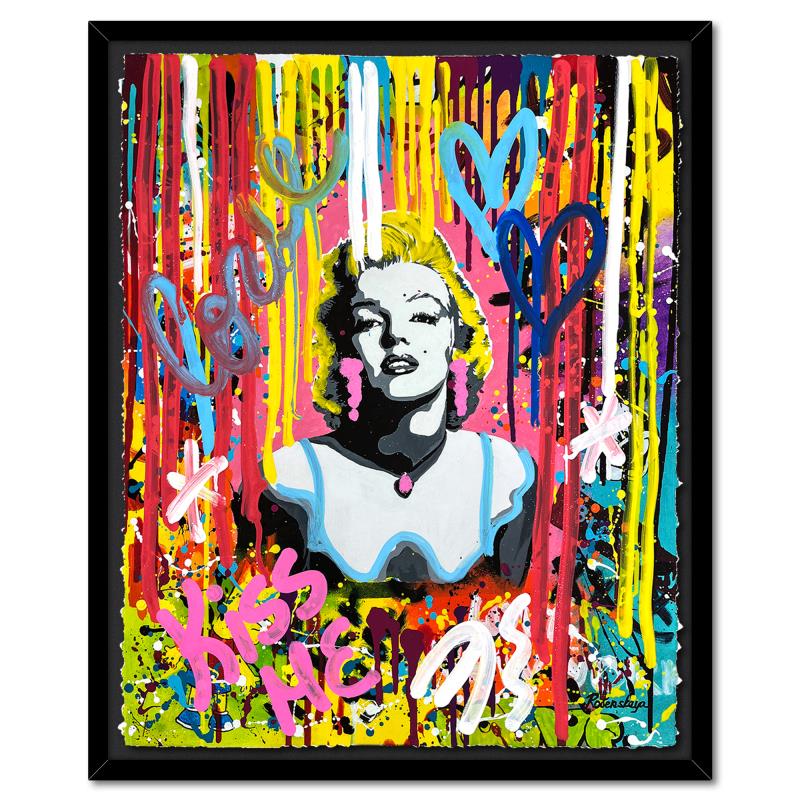 "Pink Marilyn" is a one-of-a-kind mixed media on deckle edge paper by Nastya Rovenskaya; hand signed by the artist. This piece comes custom framed and includes letter of authenticity. Measures approximately 36" x 30" (framed), 30" x 24" (image). This item requires special handling and may have a longer than usual turnaround.