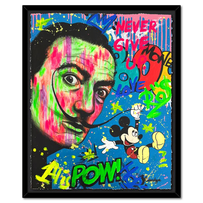 "Playing His Mustache" is a one-of-a-kind mixed media on deckle edge paper by Nastya Rovenskaya; hand signed by the artist. This piece comes custom framed and includes letter of authenticity. Measures approximately 36" x 30" (framed), 30" x 24" (image).