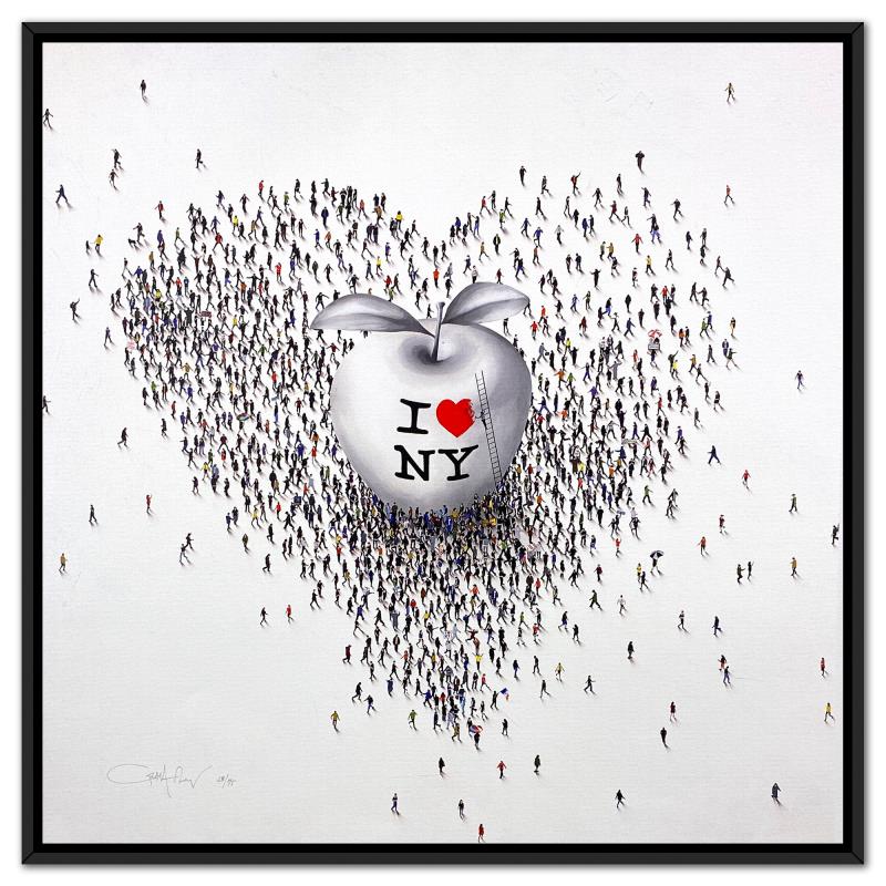 "New York Groove" is a limited edition giclee on canvas by Craig Alan. This piece comes from the Alan's "Populus" series and is numbered and hand signed by the artist. This piece comes custom framed. Includes Letter of Authenticity. Measures approx. 25.5" x 25.5" (frame), 24" x 24" (image). This item requires special handling and may have a longer than usual turnaround.