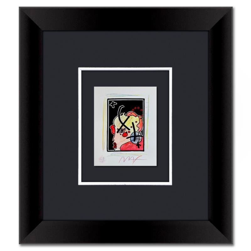 "Profile" is a one-of-a-kind mixed media on paper, hand signed by Peter Max. The piece comes custom framed with a backside cutout to display Peter Max Studio registration number 370671 certifying authenticity. Measures approximately 23" x 21" (frame), 9" x 7" (image). This item requires special handling and may have a longer than usual turnaround.