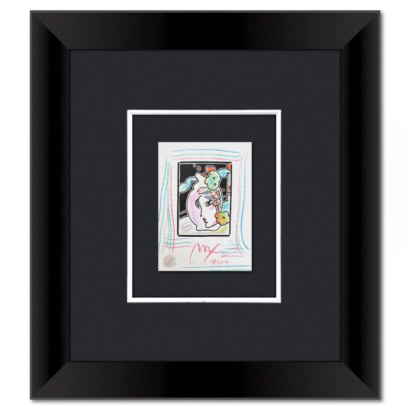 "Profile with Vase" is a one-of-a-kind mixed media on paper, hand signed by Peter Max. The piece comes custom framed with a backside cutout to display Peter Max Studio registration number 338820 certifying authenticity. Measures approximately 22.5" x 20" (frame), 8.5" x 6" (image). This item requires special handling and may have a longer than usual turnaround.