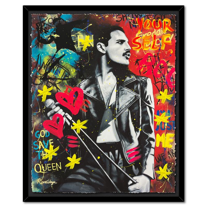"Queen" is a one-of-a-kind mixed media on deckle edge paper by Nastya Rovenskaya; hand signed by the artist. This piece comes custom framed and includes letter of authenticity. Measures approximately 37" x 30" (framed), 31" x 24" (image). This item requires special handling and may have a longer than usual turnaround.