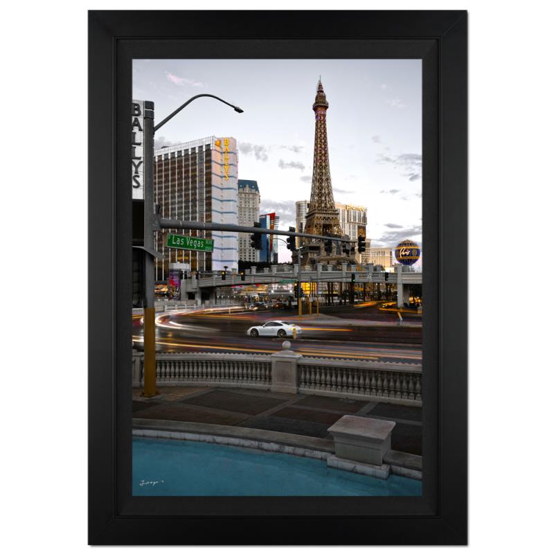 "Retro Las Vegas" is a limited edition giclee on canvas by photographer Jongas, numbered and hand signed by the artist. The piece comes custom framed and includes Letter of Authenticity. Measures approximately 35" x 26" (framed); 27" x 18" (image).