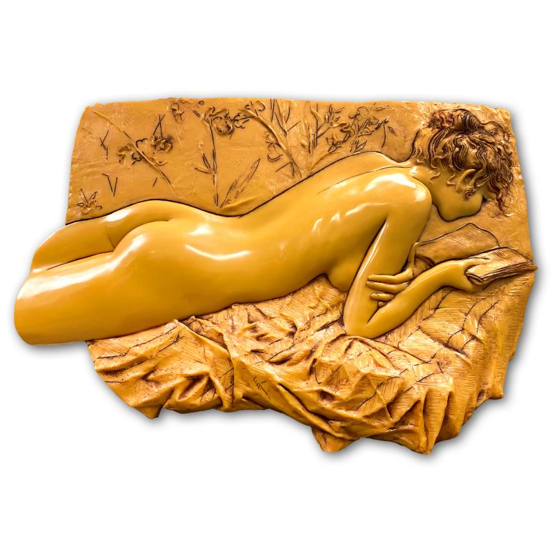 "Romantic Novel" is a limited edition epoxy resin wall relief sculpture by Frank Gallo, numbered and hand signed by the artist. Includes Letter of Authenticity. Measures approx. 33" x 40" x 5". Due to the age of this piece there may be minor flaws but the piece is in good condition.