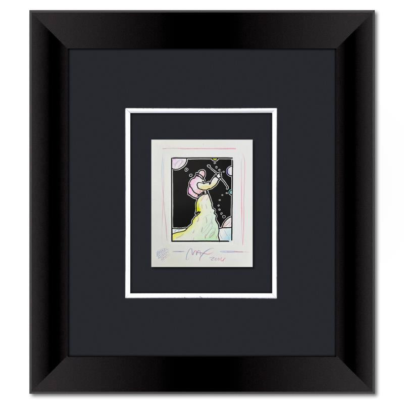 "Sage with Cane" is a one-of-a-kind mixed media on paper, hand signed by Peter Max. The piece comes custom framed with a backside cutout to display Peter Max Studio registration number 339913 certifying authenticity. Measures approximately 23" x 21" (frame), 9" x 7" (image). This item requires special handling and may have a longer than usual turnaround.