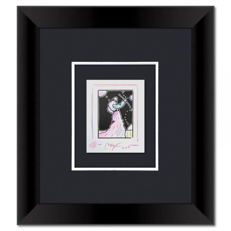 "Sage with Cane" is a one-of-a-kind mixed media on paper, hand signed by Peter Max. The piece comes custom framed with a backside cutout to display Peter Max Studio registration number 339911 certifying authenticity. Measures approximately 23" x 21" (frame), 9" x 7" (image). This item requires special handling and may have a longer than usual turnaround.