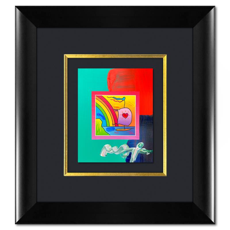 "Sailboat with Heart" is a one-of-a-kind acrylic mixed media on paper, hand signed by Peter Max. The piece comes custom framed with a backside cutout to display Peter Max Studio registration number 248607 certifying authenticity. Measures approximately 24" x 22" (frame), 10" x 8" (image). This item requires special handling and may have a longer than usual turnaround.