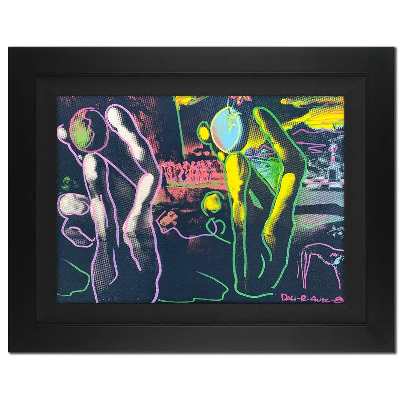 Ringo Daniel Funes (Protege of Andy Warhol's Apprentice, Steve Kaufman), "Salvador Dali Hand Holding Eggs" Framed One-of-a-Kind Mixed Media on Canvas, Hand Signed by the artist and Steve Kaufman (1960-2010) with Letter of Authenticity.