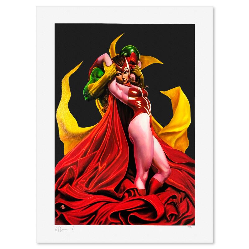 "Scarlet Witch & Vision" is a limited edition giclee on paper from Marvel Comics and Adi Granov, PP numbered 3/4 and hand signed by the artist. Includes Letter of Authenticity. Measures approx. 24" x 18" (border) 20" x 14" (image).