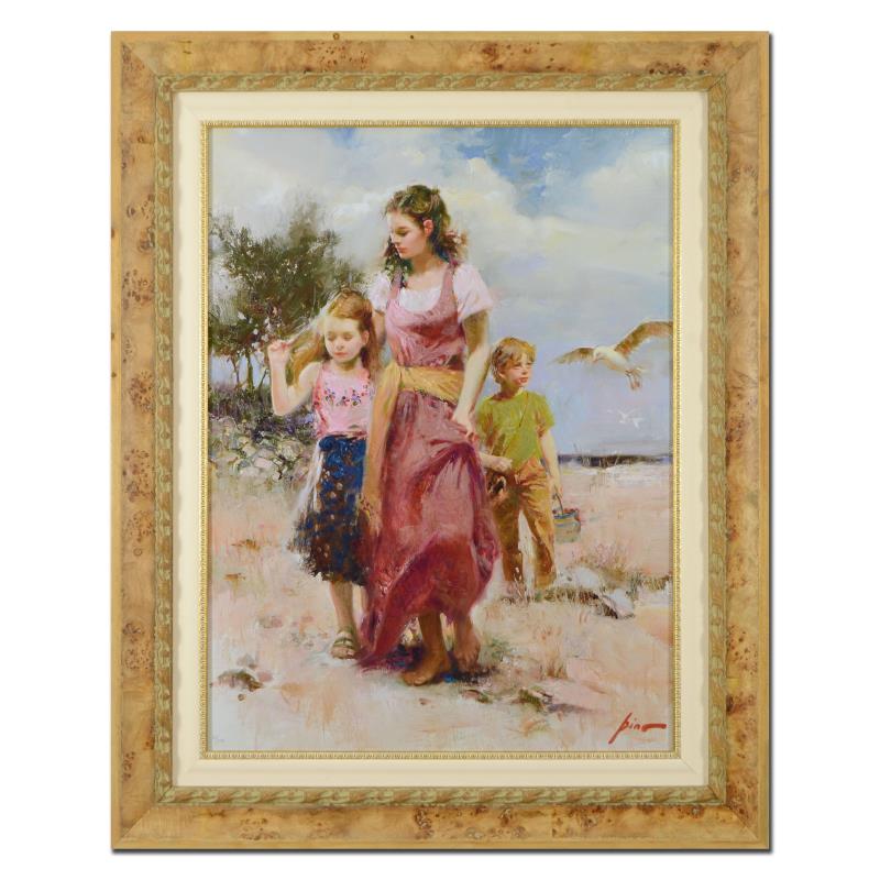 Pino's portraits allow glimpses into intensely personal, intimate spaces, conveying emotion through rich, warm color and sensual brushwork. "Sea Spray" is a hand embellished limited edition giclee on canvas by Pino (1939-2010). The piece is numbered, hand signed, custom framed, and includes certificate of authenticity. Measures approx. 42" x 51.5" (frame), 30" x 40" (image). This item requires special handling and may have a longer than usual turnaround.