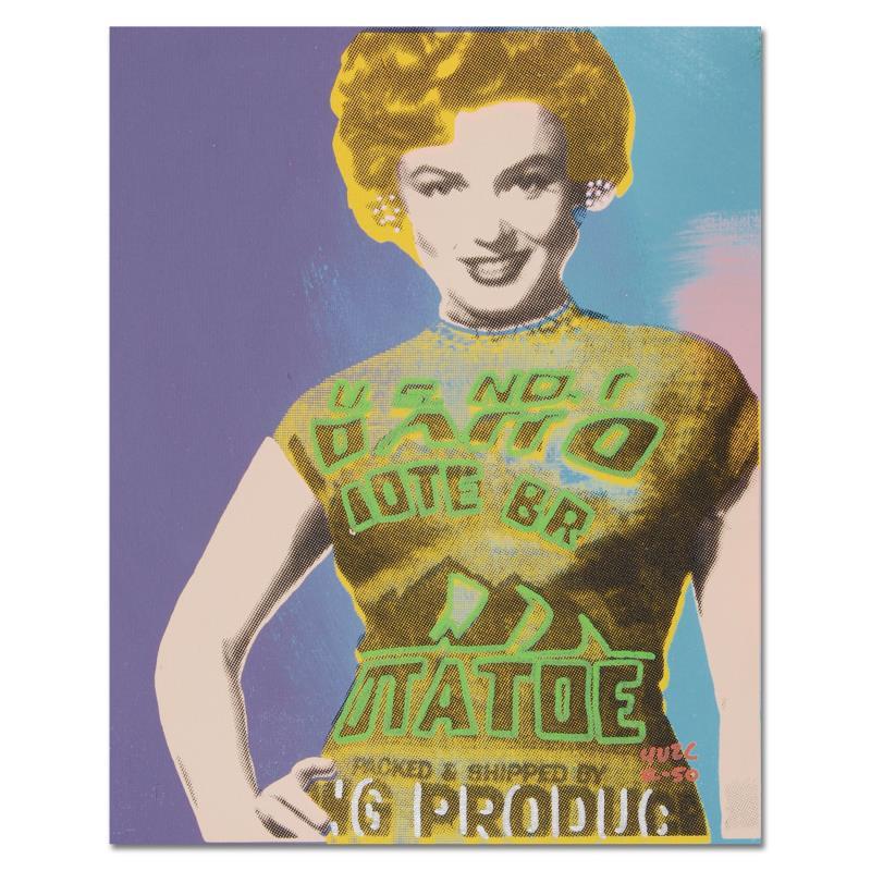 "See My Potato Sack" is a one-of-a-kind hand-pulled silkscreen and mixed media painting on canvas by Ringo. This piece is hand signed by the artist and comes from the Andy Warhol Legacy Series. Includes Certificate of Authenticity. Due to the nature of the canvas, these pieces will need to be mounted for framing. Measures approx. 12" x 16" (image).