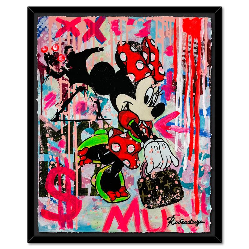 "Shopping Time" is a one-of-a-kind mixed media on deckle edge paper by Nastya Rovenskaya; hand signed by the artist. This piece comes custom framed and includes letter of authenticity. Measures approximately 36" x 30" (framed), 30" x 24" (image). This item requires special handling and may have a longer than usual turnaround.