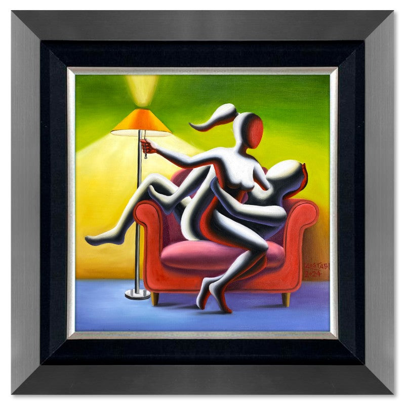 "Softly Surrendering" is an original oil painting on canvas by Mark Kostabi, hand signed by the artist. This piece comes custom framed. Includes Certificate of Authenticity. Measures approx. 30" x 29.5" (frame), 20" x 19.5" (image).