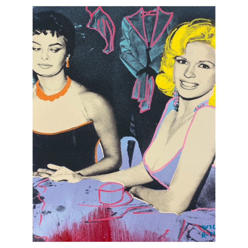 Ringo Daniel Funes (Protege of Andy Warhol's Apprentice, Steve Kaufman), "Sophia Loren and Jane Mansfield" One-of-a-Kind Mixed Media on Canvas, Hand Signed with Letter of Authenticity.