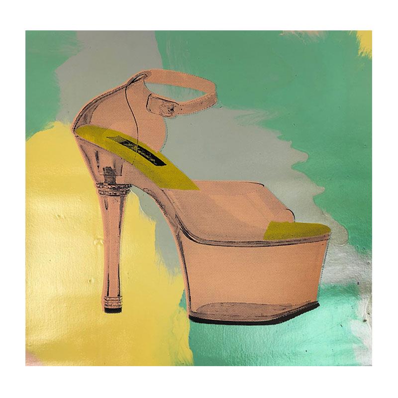 "Stripper Shoes" is a limited edition hand pulled silkscreen mixed media on canvas by Andy Warhol protege Steve Kaufman (1960-2010). This piece is numbered and 42/50 and hand signed inverso. Includes letter of authenticity. As is common with Kaufman's works, this piece may have perceived minor flaws, but is in overall good condition. Measures approximately 17" x 17" (image).