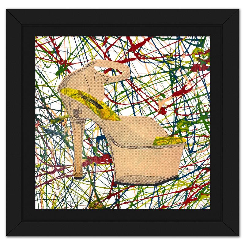 "Stripper Shoes" is a hand embellished limited edition silkscreen on canvas by Andy Warhol protege, Steve Kaufman (1960-2010), numbered 31/50 inverso and hand signed by the artist. This piece comes custom framed. Includes Letter of Authenticity. Measures approx. 17" x 17" (frame), 14" x 14" (image). This item requires special handling and may have a longer than usual turnaround.