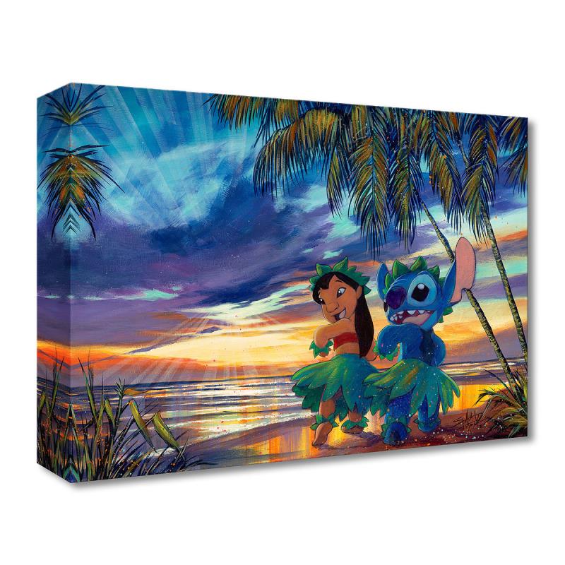 "Sunset Salsa" is a limited edition giclee on canvas by Stephen Fishwick. Part of the Treasures collection from Disney Fine Art, this limited edition comes gallery wrapped and ready to hang and comes with a certificate of authenticity. The edition is limited to 1500 pieces. Item measures approximately 12 x 18".