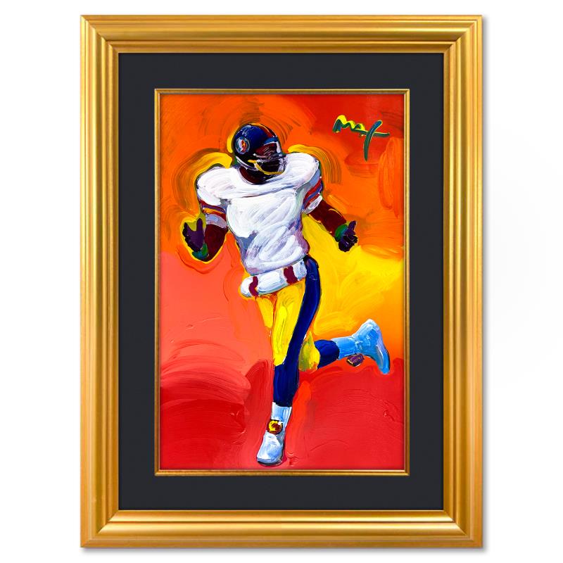 "Superbowl XXXI" is a one-of-a-kind mixed media on paper, hand signed by Peter Max. The piece comes custom framed with a backside cutout to display Peter Max Studio registration number 315366 certifying authenticity. Measures approximately 48" x 36" (frame), 36" x 24" (image). This item requires special handling and may have a longer than usual turnaround.