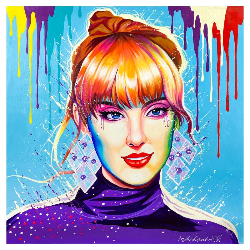 "Taylor Swift" is an original acrylic painting on canvas by Alexander Ishchenko, hand signed by the artist. Includes Letter of Authenticity. Measures approx. 36" x 36" (image).