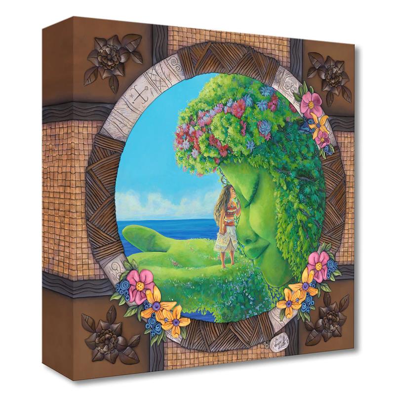 "Te Fiti" is a limited edition giclee on canvas by Denyse Klette. Part of the Treasures collection from Disney Fine Art, this limited edition featuring Moana imagery comes gallery wrapped and ready to hang and comes with a certificate of authenticity. The edition is limited to 1500 pieces. Item measures approximately 14" x 14".