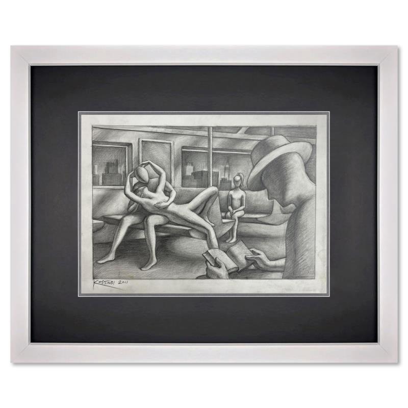 "The Commute" is an original drawing on paper by Mark Kostabi, hand signed by the artist. This piece comes custom framed. Includes Certificate of Authenticity. Measures approx. 18" x 15" (frame), 9" x 12" (image). This item requires special handling and may have a longer than usual turnaround.