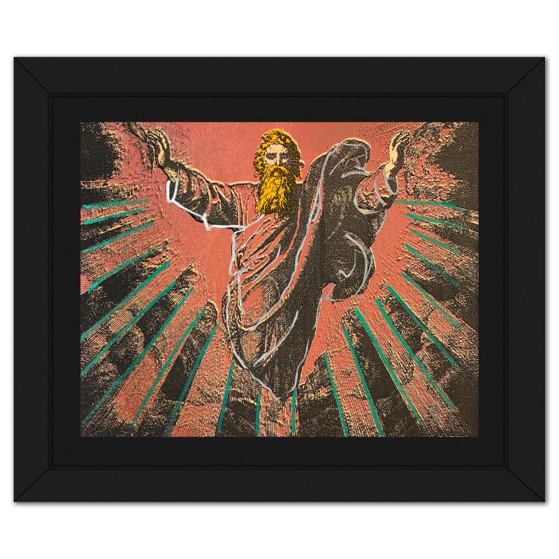 "The Creation" is a hand embellished limited edition silkscreen on canvas by Andy Warhol protege, Steve Kaufman (1960-2010), numbered 13/50 inverso and hand signed by the artist. This piece comes custom framed. Includes Letter of Authenticity. Measures approx. 13.5" x 16" (frame), 10.5" x 13" (image). This item requires special handling and may have a longer than usual turnaround.